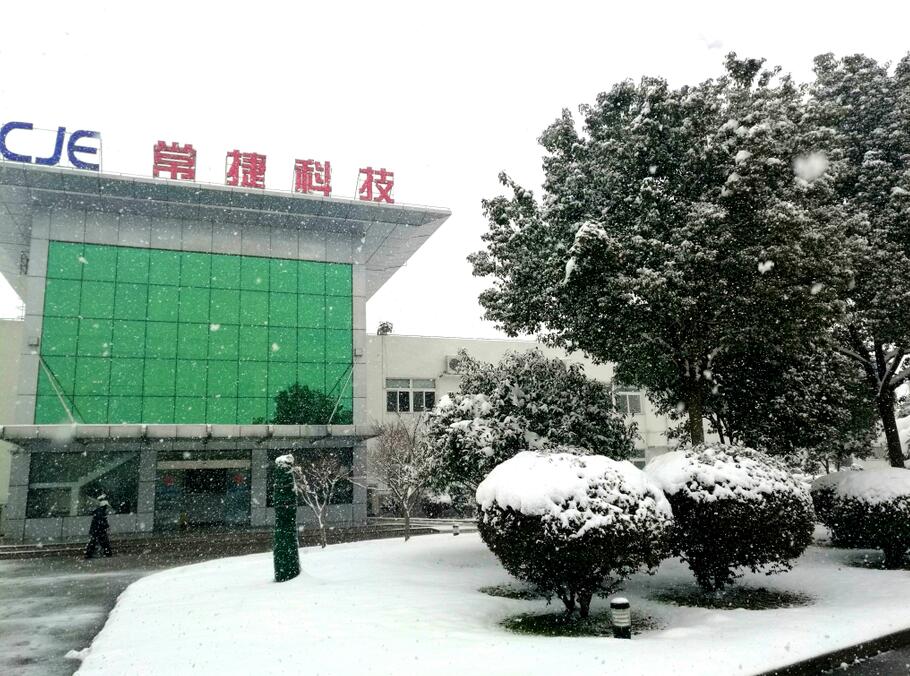 今年的雪來勢兇猛,全城開啟“冰雪奇緣”模式。廠區(qū)道路、屋面、車棚、樹木被積雪覆蓋,給全體員工的出行帶來不便。但“CJE 常捷科技”在銀裝素裹下更顯熠熠生輝。